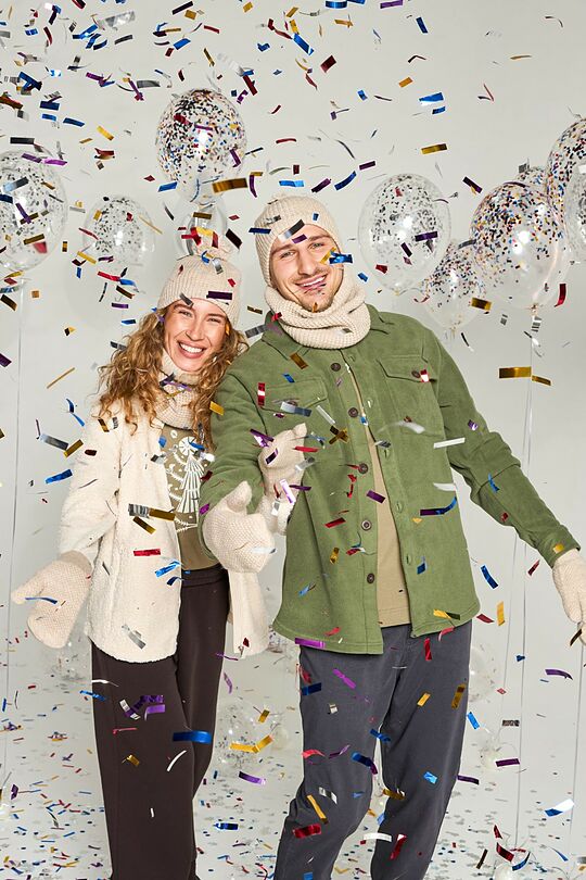 • Neck muff with fleece lining - fabric made from synthetic and natural fibres. Natural wool has thermoregulatory and excellent moisture wicking properties. With fleece lining. Synthetic fleece fabric absorbs and wicks moisture well, maintains body temperature, allows the body to breathe, and is warm and lightweight. Dimensions: width 26 cm, length 27 cm.