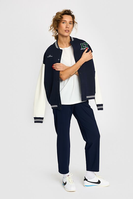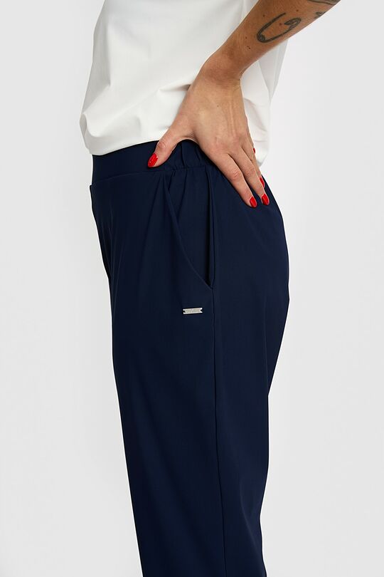 Tapered sweatpants made from high-quality Sensitive® fabric. Designed and manufactured in Italy, Sensitive® fabric is stretchy, retains the original visual appeal of the garment and is very easy to care for. With side pockets for added practicality and an elasticated waistband at the back ensuring a snug fit. The sweatpants do not restrict your movements and thus are a perfect choice for wearing daily and at leisure. Classic, tapered fit for easy styling with various outfits. Adorned with the metal badge bearing the AUDIMAS logo.